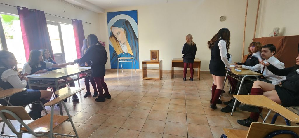 El proceso continuó el martes 11 de diciembre, jornada en la que se llevó a cabo la votación formal para elegir al nuevo Centro de Alumnos, que presidira el cargo por dos años. La elección se desarrolló en dos bloques horarios: de 9:00 a 10:00 horas y de 10:20 a 11:50 horas, bajo la supervisión de los profesores asesores del Centro de Alumnos, David Arriagada y Miriam Ross. Esta instancia permitió que cada estudiante ejerciera su derecho a voto en un ambiente ordenado, transparente y participativo, reafirmando el compromiso del Mater Dolorosa con la formación cívica y el fortalecimiento de la vida democrática dentro de la comunidad escolar.